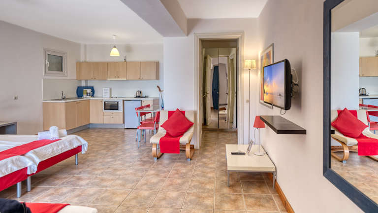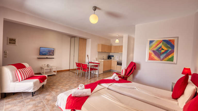 Die Apartments in den Glyfa Corfu Apartments sind modern und komfortabel eingerichtet. Jedes Apartment verfügt über einen großzügigen Balkon mit Meerblick, auf dem Sie den Tag entspannt beginnen können. Zur Ausstattung gehören auch eine Küchenzeile, in der Sie Ihre eigenen Mahlzeiten zubereiten können, sowie kostenfreier WLAN-Zugang.