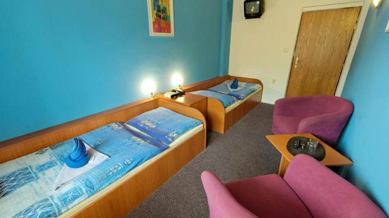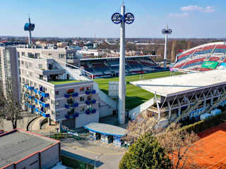 Das Hotel Gól garni liegt direkt im Sportbereich des SK Sigma Olomouc und bietet somit eine ideale Lage für Sportfans. In unmittelbarer Nähe finden Sie verschiedene Sport- und Freizeiteinrichtungen, darunter Tennisplätze und ein Schwimmbad. Die Parkplätze vor dem Hotel sind kostenlos und ermöglichen eine bequeme Anreise mit dem Auto. Die Straßenbahn- und Bushaltestellen sind nur 5 Gehminuten entfernt und der nächste Bahnhof ist 2 km entfernt.