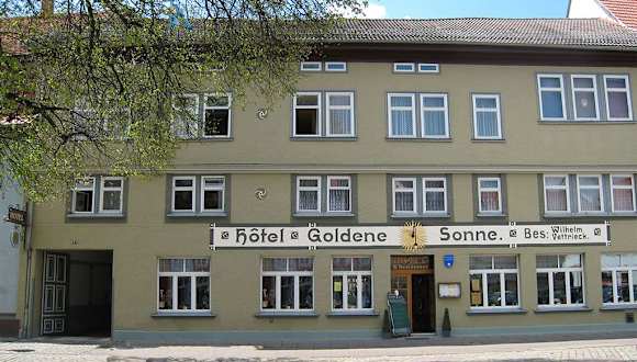Herzlich willkommen in der Bachstadt - Arnstadt. Wir begrüßen Sie und wünschen Ihnen einen angenehmen Aufenthalt im Hotel "Goldene Sonne" in Arnstadt´s Mitte, nur wenige Gehminuten von den Sehenswürdigkeiten der Stadt entfernt, romantisch speisen und logieren, wo einst der geniale J. S. Bach seine Familienfeste feierte. Hier können Sie ungestört schlafen, professionell tagen, abwechslungsreich Urlaub machen sowie kulinarisch genießen.
