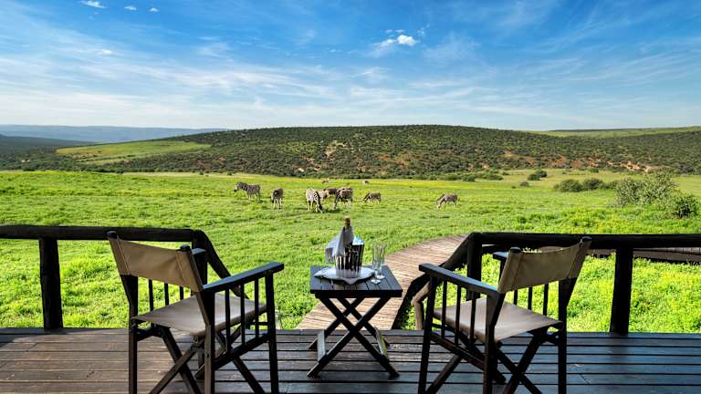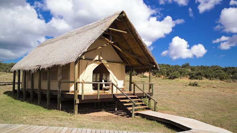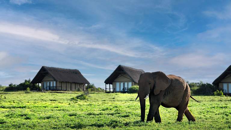 Das Gorah Elephant Camp befindet sich im Addo Elephant National Park, einem malariafreien Gebiet. Das Camp erstreckt sich über ein 4.500 Hektar großes Wildschutzgebiet und bietet einen atemberaubenden Blick auf ein Wasserloch, an dem regelmäßig wilde Tiere, darunter Elefanten, Nashörner und Löwen, zu sehen sind. Die Umgebung lädt zu Pirschfahrten ein, bei denen Sie die Tierwelt hautnah erleben können. Die Stadt Grahamstown mit ihren beeindruckenden Architekturbeispielen ist ebenfalls einen Besuch wert und liegt etwa 109 km entfernt. Der Flughafen Port Elizabeth ist ca. 70 km entfernt.