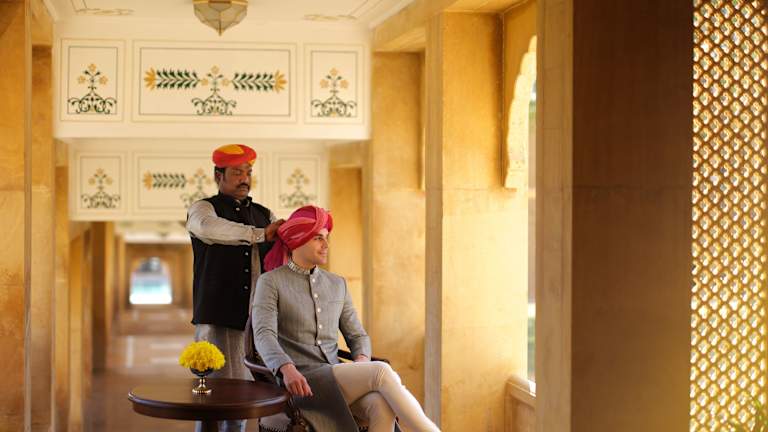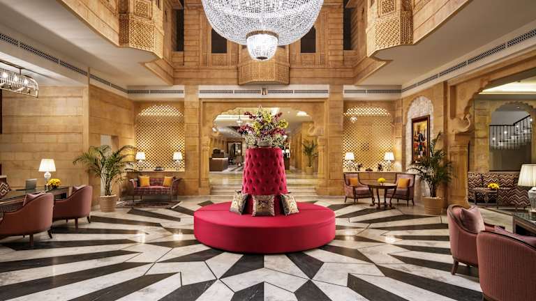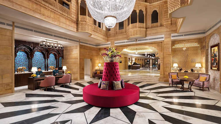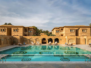 Das Gorbandh Palace Hotel in Jaisalmer bietet seinen Gästen einen komfortablen Aufenthalt in einem historischen Gebäude. Das Hotel verfügt über einen Außenpool und bietet Massagen sowie ein hochwertiges Freizeitangebot. Das Restaurant serviert ein abwechslungsreiches Frühstücksbuffet und abends können die Gäste bei einem Drink in der Bar entspannen. Das Hotel bietet auch ein Businesscenter und kostenlose Zeitungen in der Lobby. Der Flughafentransfer und der Abholservice vom Bahnhof sind gegen Gebühr verfügbar.