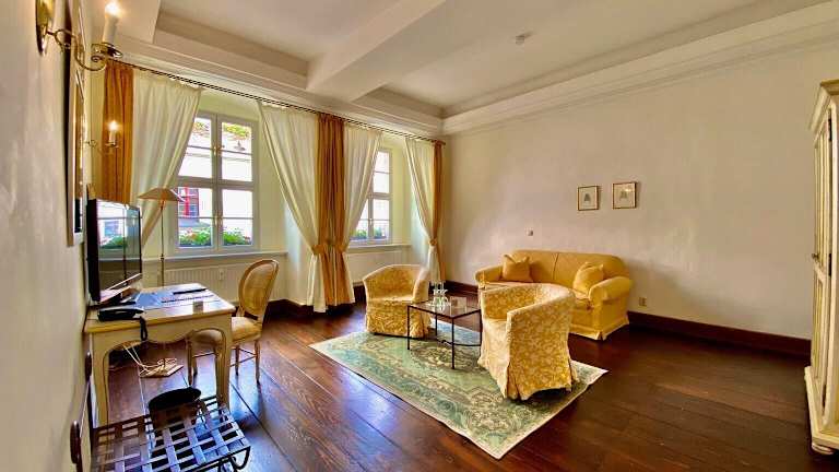 Das Hotel Graf von Mansfeld ist ein historisches Hotel, das Gästen eine klassische Einrichtung bietet. Die Unterkunft verfügt über elegante Zimmer und Suiten, die mit handgefertigten Möbeln eingerichtet sind.