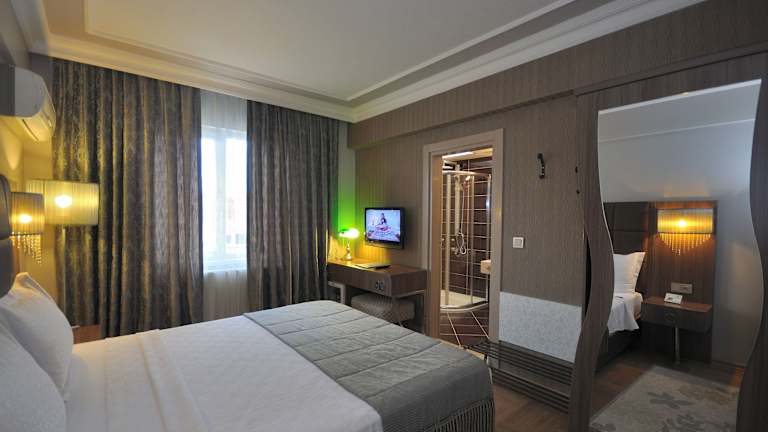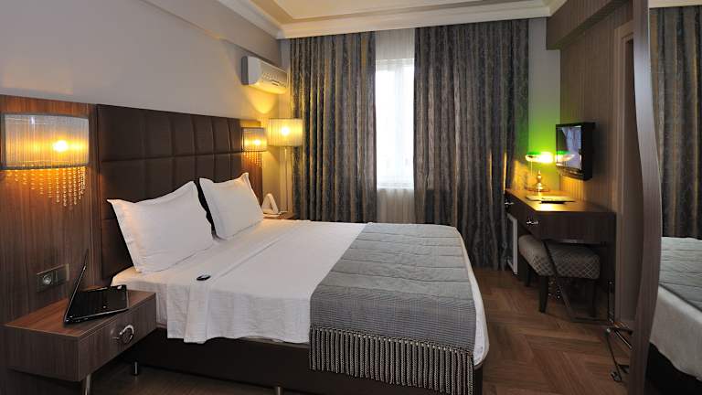 Die Zimmer im Grand Atakum Hotel sind komfortabel und stilvoll eingerichtet. Sie verfügen über klimatisierte Räume mit Balkon, von denen aus Sie den Blick auf das Schwarze Meer und den Berg Güngörmez genießen können. Die Zimmer sind mit Parkettböden und eleganten Möbeln ausgestattet und bieten Annehmlichkeiten wie kostenloses WLAN und einen Flachbild-Sat-TV. Einige Zimmer sind im Barockstil gestaltet und verfügen über einen separaten Sitzbereich.