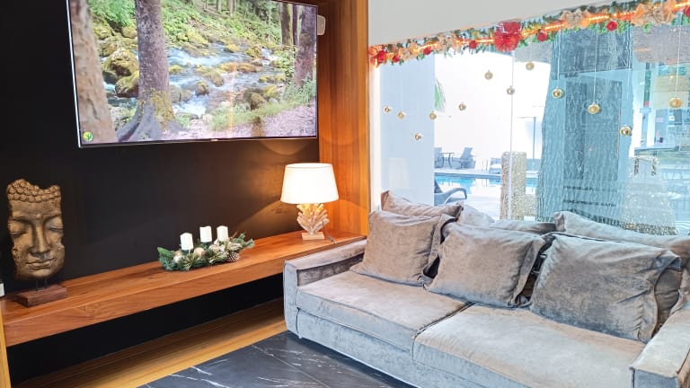 Das Hotel verfügt über einen Außenpool, der zum Entspannen und Erfrischen einlädt. Auf der Sonnenterrasse können Sie die Sonne genießen und sich auf bequemen Liegen ausruhen. Das Hotel bietet auch ein Spa und ein Solarium, in dem Sie sich verwöhnen lassen können. Für Kinder gibt es einen separaten Kinderpool.