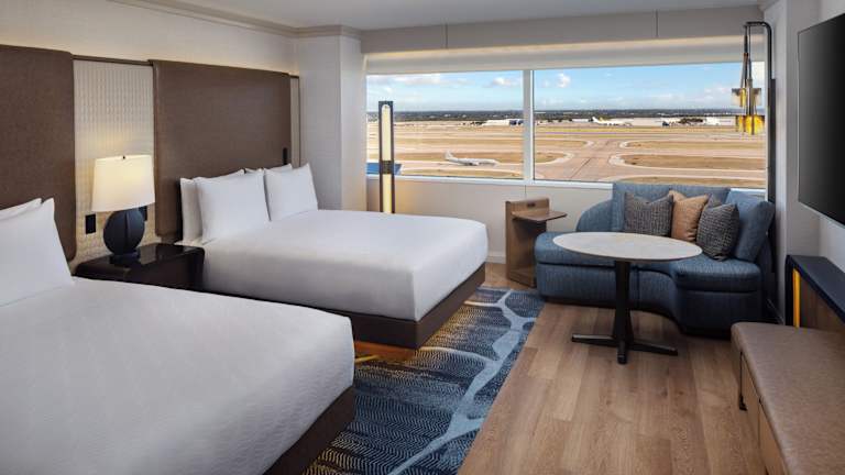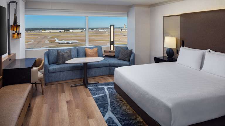 Die Zimmer im Grand Hyatt Dallas Fort Worth Airport Hotel sind modern eingerichtet und bieten den Gästen einen komfortablen Rückzugsort. Jedes Zimmer verfügt über einen Flachbild-Kabel-TV mit Zugang zu Pay-per-View-Kanälen, eine iPod-Dockingstation und ein eigenes Badezimmer mit Haartrockner und Bademantel. Für zusätzlichen Komfort stehen Ihnen Annehmlichkeiten wie kostenfreies WLAN zur Verfügung.