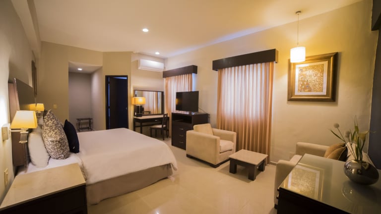 Das Hotel Grand Marlon liegt nur 500 Meter vom Lázaro Cárdenas Central Park entfernt und bietet eine günstige Lage für Gäste, die die Stadt erkunden möchten. Das Maya Kulturmuseum ist nur 300 Meter entfernt und bietet einen Einblick in die faszinierende Geschichte und Kultur der Maya. In der Umgebung finden Sie auch verschiedene Restaurants, in denen Sie die lokale Küche probieren können. Der internationale Flughafen Chetumal ist nur 3,5 km entfernt und das Belize Dock erreichen Sie nach nur 1 km. Für Tierliebhaber bietet der Biouniverzoo Zoo eine interessante Attraktion, die in nur 10 Minuten mit dem Auto erreichbar ist.