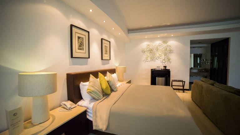 Die klimatisierten Zimmer im Hotel Grand Marlon sind modern eingerichtet und bieten den Gästen einen komfortablen Rückzugsort. Jedes Zimmer verfügt über einen Safe, in dem Sie Ihre Wertsachen sicher aufbewahren können, sowie ein eigenes Bad mit Bademänteln und Hausschuhen für zusätzlichen Komfort. Zur Ausstattung gehören auch ein TV und ein Telefon, damit Sie mit Ihren Lieben in Verbindung bleiben können.