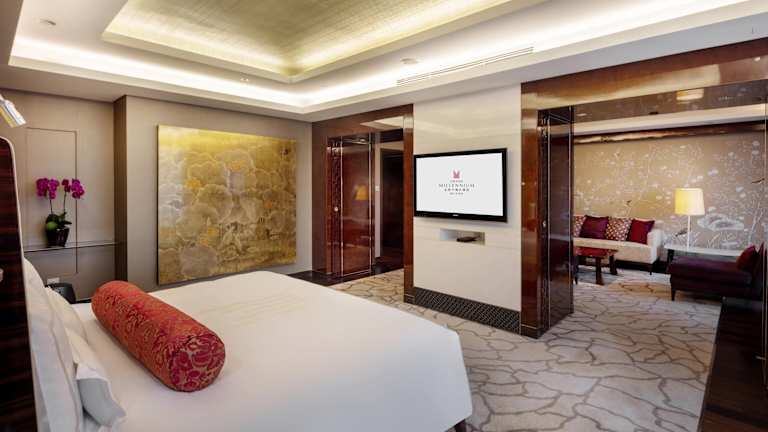 Das Grand Millennium Beijing bietet elegante und geräumige Zimmer mit moderner Einrichtung und großen raumhohen Fenstern, die einen atemberaubenden Blick auf die Stadt bieten. Jedes Zimmer verfügt über Annehmlichkeiten wie einen Flachbild-TV, eine Minibar und einen eigenen Safe. Die Badezimmer sind gut ausgestattet und bieten eine Badewanne, eine separate Dusche, einen Bademantel und kostenfreie Pflegeprodukte. Kostenloses WLAN ist im gesamten Hotel verfügbar.