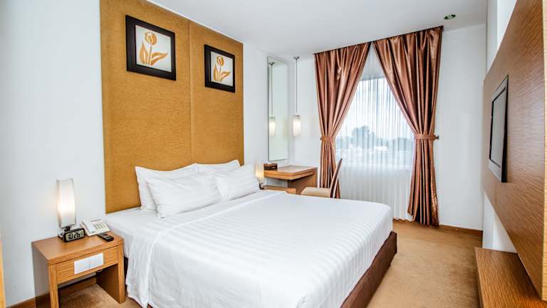Das Hotel verfügt über insgesamt 107 Zimmer, die sich über 8 Etagen erstrecken. Alle Zimmer sind klimatisiert und bieten große Fenster sowie hochwertige Bettwäsche. Zur Ausstattung gehören ein Flachbild-Sat-TV, ein Sitzbereich und ein Wasserkocher. Jedes Zimmer verfügt über ein eigenes Bad mit Dusche und Haartrockner.
