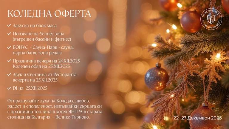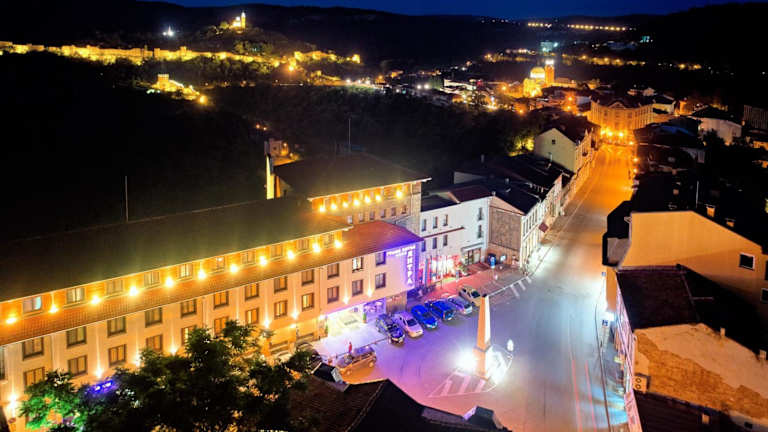 Das Yantra Grand Hotel in Veliko Tarnovo bietet seinen Gästen einen atemberaubenden Blick auf die Festung Tzarevets und die historische Siedlung Arbanassi. Das denkmalgeschützte Hotelgebäude verbindet Tradition mit modernem Komfort und bietet eine Vielzahl von Annehmlichkeiten wie einen Innenpool, ein Fitnesscenter und ein Spa- und Wellnesscenter. Das Hotelrestaurant serviert eine Auswahl an internationalen und bulgarischen Gerichten, darunter auch Spezialitäten nach authentischen mittelalterlichen bulgarischen Rezepten.