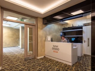 Das Hotel Grand bietet klimatisierte Zimmer mit moderner Ausstattung, darunter ein Schreibtisch, ein Safe, ein Flachbild-TV und ein eigenes Badezimmer mit Dusche. Einige Zimmer verfügen über eine voll ausgestattete Küche mit Geschirrspüler, Backofen und Mikrowelle. Alle Zimmer sind zudem mit einem Kühlschrank ausgestattet.
