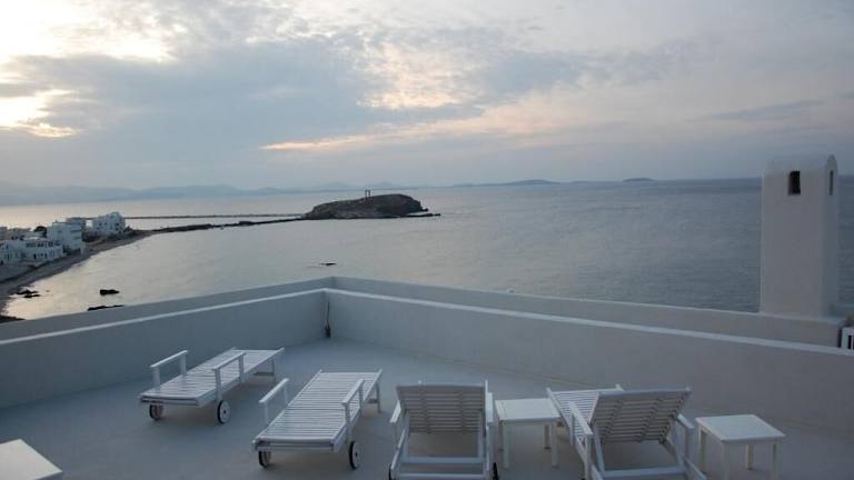 Das Grotta Hotel bietet seinen Gästen einen perfekten Mix aus einer idyllischen Lage inmitten der Hügellandschaft mit Blick auf die Stadt Naxos und der Nähe zum Strand. Die geschmackvoll gestalteten Zimmer, der sonnige Frühstücksraum und die großzügige Veranda mit Meerblick sorgen für einen angenehmen Aufenthalt. Das Hotelteam steht Ihnen jederzeit zur Verfügung, um Ihnen bei der Organisation von Ausflügen und Aktivitäten zu helfen. Die Nähe zu Sehenswürdigkeiten wie der venezianischen Burg und dem Apollon-Tempel machen das Grotta Hotel zum idealen Ausgangspunkt, um die Stadt Naxos zu erkunden.