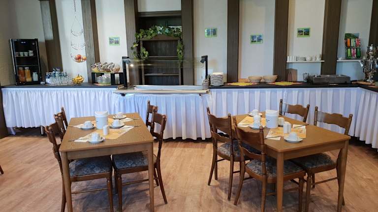 Starten Sie jeden Morgen mit einem abwechslungsreichen Frühstück im traditionellen Frühstücksraum des Hotels. Hier können Sie sich mit einer Vielzahl von warmen und kalten Speisen, frischem Brot und Gebäck, Müsli, frischem Obst und vielem mehr verwöhnen lassen. Das freundliche Personal steht Ihnen gerne mit Empfehlungen für Restaurants und Cafés in der Umgebung zur Verfügung, in denen Sie lokale Spezialitäten und erlesene Weine probieren können.
