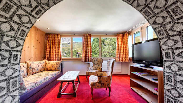 Das Hotel Gspan befindet sich in Innerarosa und liegt nur 400 m von der Bushaltestelle Gada entfernt. Es ist ideal gelegen, direkt an den Skipisten und in unmittelbarer Nähe zu den Skiliften Hörnli und Kulm. Das Stadtzentrum von Arosa erreichen Sie nach 1,5 km, während der Golfklub Arosa nur 10 Fahrminuten entfernt ist. Die Umgebung des Hotels ist von bunten Blumenwiesen im Sommer geprägt und bietet zahlreiche Wanderwege für Naturliebhaber.