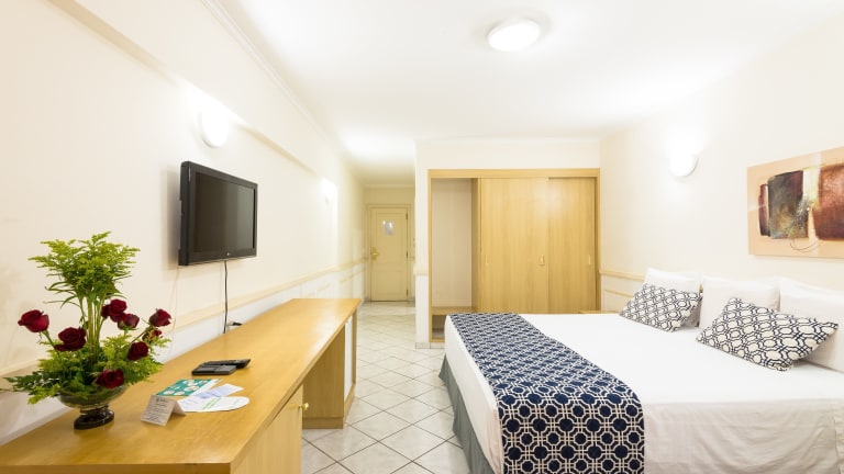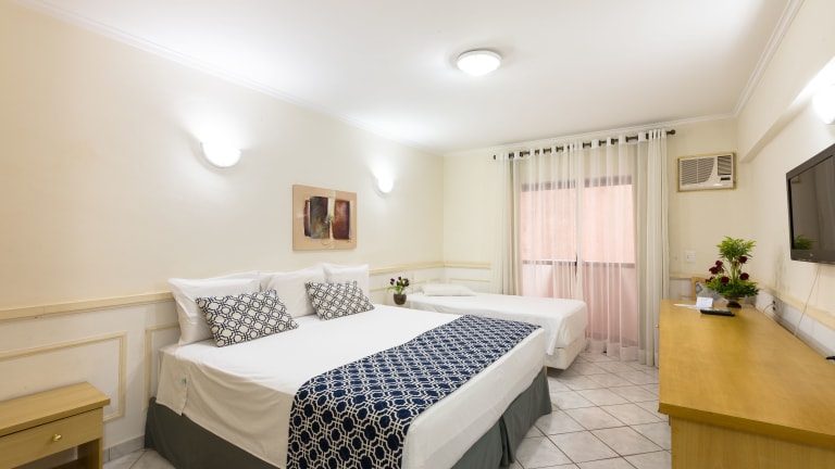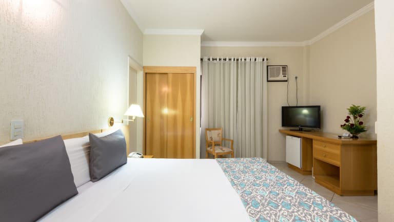 Die Zimmer im Hotel Guarany sind komfortabel und geschmackvoll eingerichtet. Sie verfügen über eine Klimaanlage und sind in hellen Farben gestaltet. Die Zimmer sind mit einem TV, einer Minibar und einem eigenen Bad ausgestattet. Teppich- oder Fliesenböden sorgen für zusätzlichen Komfort.