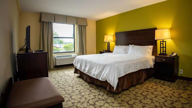 Die Zimmer sind mit Klimaanlage und Heizung ausgestattet und umfassen ein Kingsizebett sowie ein Sofabett, mit der Möglichkeit, Zustellbetten anzufordern. Die Zimmer verfügen über einen Safe, einen Schreibtisch, einen Kühlschrank, eine Mikrowelle, eine Tee- und Kaffeemaschine sowie ein Bügelset. Zudem sind ein Telefon, Sat-TV und kostenfreies WLAN vorhanden. Das Badezimmer ist mit Dusche und Badewanne ausgestattet und bietet einen Haartrockner sowie Kosmetikartikel. Es sind rollstuhlgerechte Zimmer mit barrierefreien Badezimmern verfügbar. Das Hotel bietet Nichtraucherzimmer an.