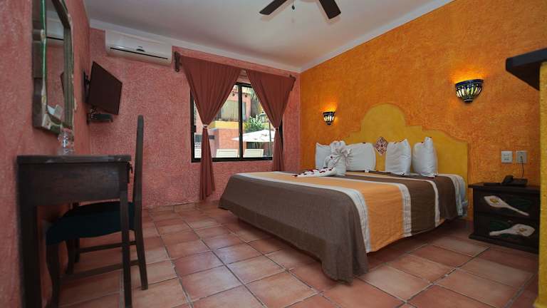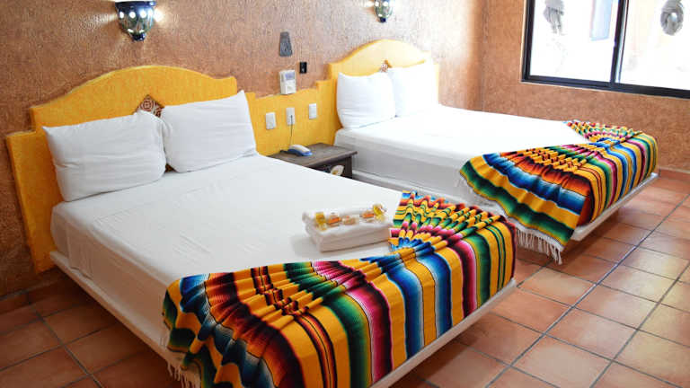 Die Zimmer im Hacienda Maria Bonita Hotel sind im mexikanischen Stil eingerichtet und bieten eine gemütliche und komfortable Atmosphäre. Jedes Zimmer ist klimatisiert und verfügt über Annehmlichkeiten wie WLAN, Sat-TV und einen Balkon. Zur weiteren Ausstattung gehören ein Safe, ein Schreibtisch und ein Kühlschrank. Familienzimmer stehen ebenfalls zur Verfügung.