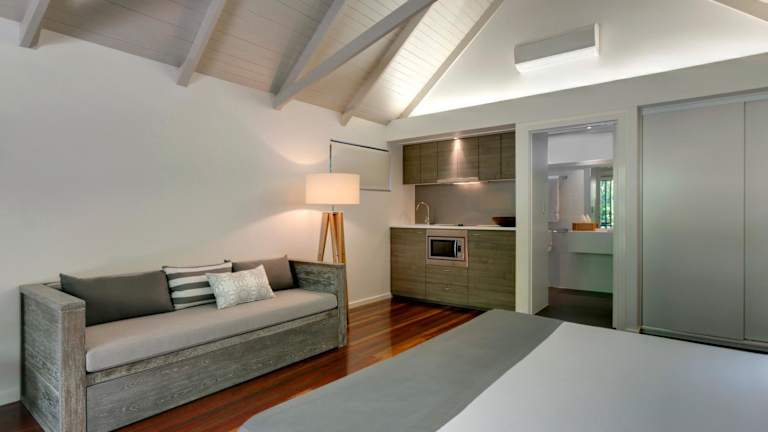 Das Hotel Palm Bungalows auf Hamilton Island bietet eine ideale Lage nur wenige Gehminuten vom Strand Catseye Beach entfernt. Die Bungalows sind ruhig und privat, mit einem eigenen Balkon und Blick auf den tropischen Garten. Kostenloser Flughafen-/Hoteltransfer, kostenlose Nutzung von Schnorchel- und Windsurfausrüstung sowie kostenfreies WLAN sind weitere Annehmlichkeiten, die den Aufenthalt angenehm gestalten. Die Gäste haben außerdem Zugang zum Fitnesscenter, den Pools und den Tennisplätzen der Insel. Der Tourenschalter bietet Ausflüge zum berühmten Whitehaven Beach und zum Great Barrier Reef an. Die Palm Bungalows sind auch in der Nähe des Wildparks Hamilton Island und des Hauptpools der Insel gelegen. Der Flughafen Great Barrier Reef ist nur 1 km entfernt. Der Check-in erfolgt im Reef View Hotel, das mit einem kostenlosen Transfer vom Flughafen/Marina von Hamilton Island erreicht werden kann.
