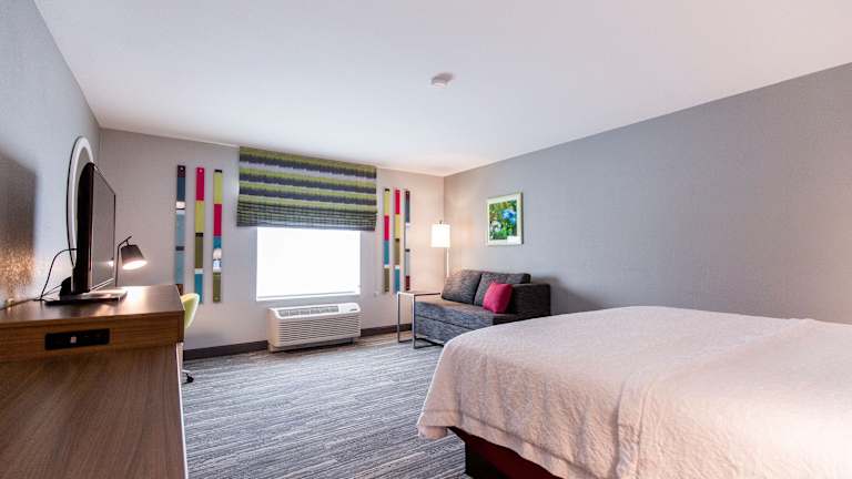 Die Zimmer im Hampton Inn Bismarck sind komfortabel und modern eingerichtet. Sie verfügen über einen 32-Zoll-Flachbild-TV mit HBO und Videospielen. Kostenloses WLAN und ein Schreibtisch sind ebenfalls vorhanden. Die Zimmer bieten auch eine Kaffeemaschine und einen Haartrockner. Es stehen auch Zimmer mit Schlafsofas zur Verfügung.