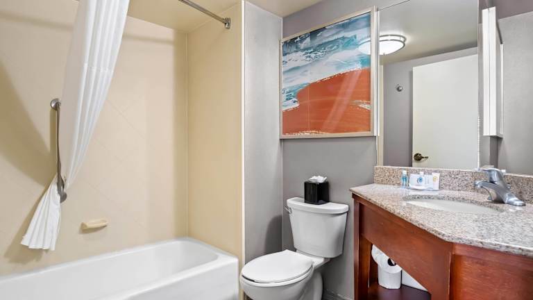 Das Comfort Inn bietet 111 Nichtraucherzimmer, die über einen Aufzug erreichbar sind. Jedes Zimmer ist mit einem Flachbild-Kabel-TV, einer Mikrowelle, einem Kühlschrank und kostenfreiem WLAN ausgestattet. Zur weiteren Ausstattung gehören ein Schreibtisch, ein Radio, ein Wecker und ein Haartrockner im Badezimmer. Familienzimmer und rollstuhlgerechte Zimmer sind auf Anfrage verfügbar.
