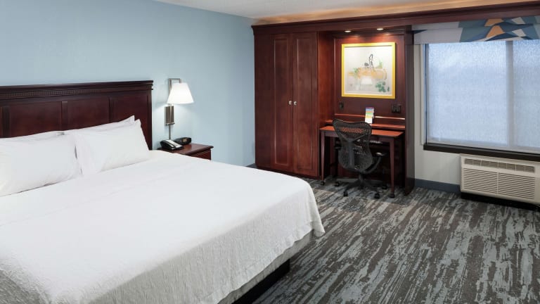 Das Hampton Inn Kansas City Liberty bietet 122 Zimmer auf vier Etagen. Die Zimmer sind modern und komfortabel eingerichtet und verfügen über Annehmlichkeiten wie Klimaanlage, individuell steuerbare Heizung, Kaffee- und Teezubereitungsmöglichkeiten sowie einen Fernseher. Einige Zimmer verfügen auch über einen Kühlschrank. Die Badezimmer sind mit einer Dusche oder einer Badewanne ausgestattet und ein Haartrockner steht ebenfalls zur Verfügung. WLAN ist in den öffentlichen Bereichen kostenlos verfügbar.