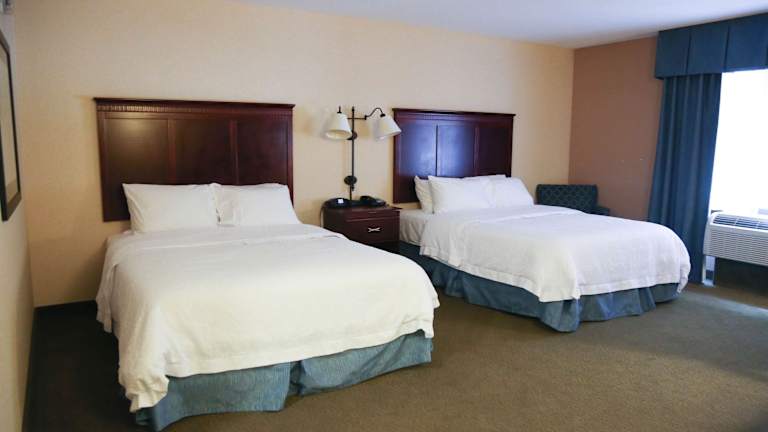 Die 64 Suiten des Hampton Inn Morehead erstrecken sich über drei Etagen und sind über einen Aufzug erreichbar. Die Zimmer sind komfortabel eingerichtet und verfügen über Annehmlichkeiten wie Klimaanlage, Heizung, Kochnische, Mikrowelle und Kaffee-/Teezubereiter. Es gibt auch einen Schreibtisch und kostenloses WLAN.