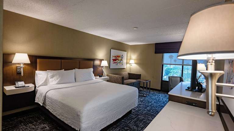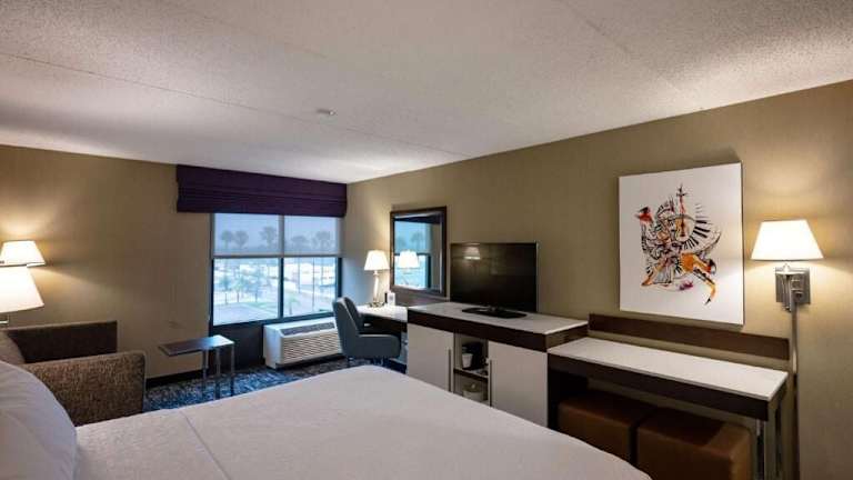 Die Zimmer im Hampton Inn by Hilton San Diego - Kearny Mesa sind komfortabel und bieten eine angenehme Atmosphäre für die Gäste. Jedes Zimmer verfügt über einen Flachbild-Kabel-TV, kostenfreies WLAN, einen kleinen Kühlschrank und Kaffeezubehör. Ein Schreibtisch und ein Bügeleisen/-brett sind ebenfalls vorhanden, um den Gästen den Aufenthalt so angenehm wie möglich zu gestalten.
