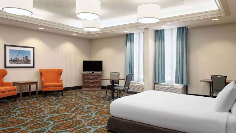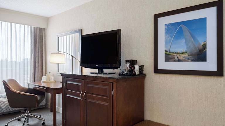 Das Wingate by Wyndham St. Louis Airport bietet 99 Nichtraucherzimmer auf fünf Etagen. Die Zimmer sind komfortabel eingerichtet und verfügen über Annehmlichkeiten wie Klimaanlage, Schreibtisch, Kühlschrank, Mikrowelle und Tee-/Kaffeemaschine. Darüber hinaus gibt es einen Fernseher mit Kabelempfang und kostenloses WLAN. Die Badezimmer sind mit einer Dusche, einem Haartrockner und Kosmetikartikeln ausgestattet. Rollstuhlgerechte Zimmer mit barrierefreiem Badezimmer sind ebenfalls verfügbar.