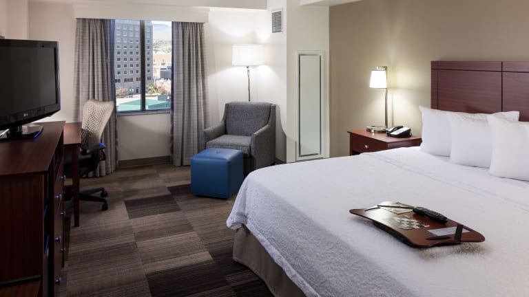 Die Zimmer im Hampton Inn & Suites Boise-Downtown bieten den Gästen Komfort und Bequemlichkeit während ihres Aufenthalts. Jedes Zimmer verfügt über eine Küche, einen kleinen Kühlschrank und eine Tee-/Kaffeemaschine. Zur Ausstattung gehören auch ein Fernseher, WLAN und ein eigenes Badezimmer mit Dusche und Haartrockner. Rollstuhlgerechte Zimmer mit barrierefreiem Badezimmer sind ebenfalls verfügbar.