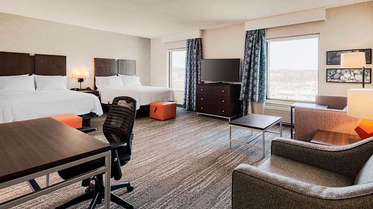 Die 163 Zimmer im Hampton Inn & Suites by Hilton Dartmouth - Halifax sind komfortabel und bieten moderne Annehmlichkeiten. Jedes Zimmer verfügt über eine Klimaanlage, individuell regulierbare Heizung, einen Safe, eine Kaffeemaschine, einen Schreibtisch und kostenfreies WLAN. Die Zimmer sind mit einem Kingsize-Bett und einem Sofabett ausgestattet. Im Badezimmer finden Sie eine Dusche, eine Badewanne, einen Haartrockner und kostenlose Kosmetikartikel.