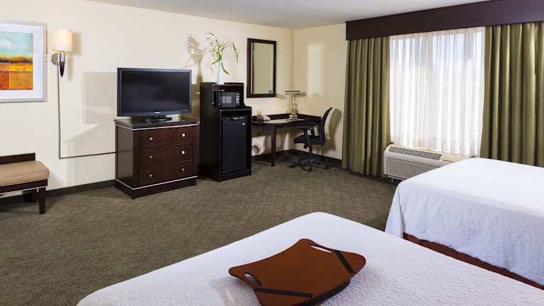 Die Zimmer im Hampton Inn & Suites Las Vegas South sind komfortabel eingerichtet und bieten Annehmlichkeiten wie einen 42-Zoll-Flachbild-HD-Kabel-TV, In-Room-Filme, kostenfreies WLAN, eine Mikrowelle, einen kleinen Kühlschrank, eine Kaffeemaschine und einen Schreibtisch. Die Zimmer sind geräumig und bieten alle Annehmlichkeiten für einen angenehmen Aufenthalt.