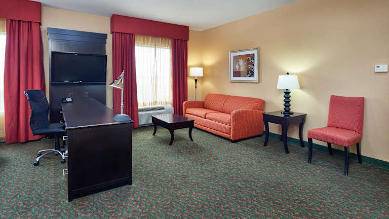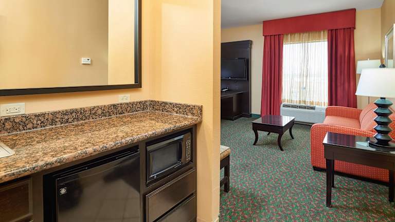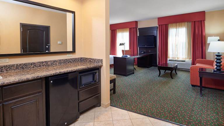 Das Hampton Inn & Suites Waco-South verfügt über 123 Zimmer, die sich auf 4 Etagen erstrecken. Das freundliche Personal an der Rezeption steht den Gästen rund um die Uhr zur Verfügung. Zur Ausstattung des Hotels gehören eine Garderobe, eine Gepäckaufbewahrung, ein Safe und ein WLAN-Zugang. Es gibt einen Parkplatz (je nach Verfügbarkeit) und Tagungseinrichtungen. Die Zimmer sind komfortabel eingerichtet und verfügen über Annehmlichkeiten wie Klimaanlage, individuell regelbare Heizung, Kingsize-Bett, Sofabett, Kühlschrank, Minikühlschrank, Mikrowelle, Tee-/Kaffeemaschine, Telefon, Sat-TV, Radio und WLAN-Zugang. Die Badezimmer sind mit Dusche, Badewanne, Whirlwanne und Haartrockner ausgestattet. Das Hotel bietet auch Nichtraucherzimmer.