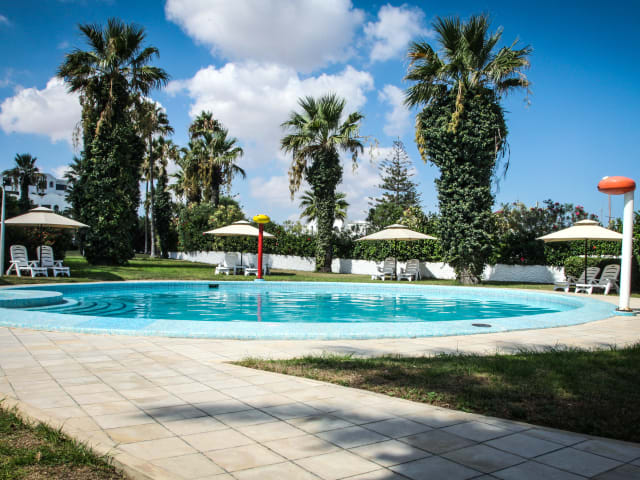 Das Hotel Hannibal Palace liegt zentral in Port el Kantaoui und nur wenige Meter vom Sandstrand entfernt. Von hier aus können Sie die wunderschöne Umgebung erkunden und die zahlreichen Freizeitaktivitäten genießen. Der Flughafen ist etwa 25 km entfernt und der Bahnhof ca. 8 km. In der Nähe des Hotels befindet sich ein Golfplatz, der sich ideal für eine Partie Golf eignet.