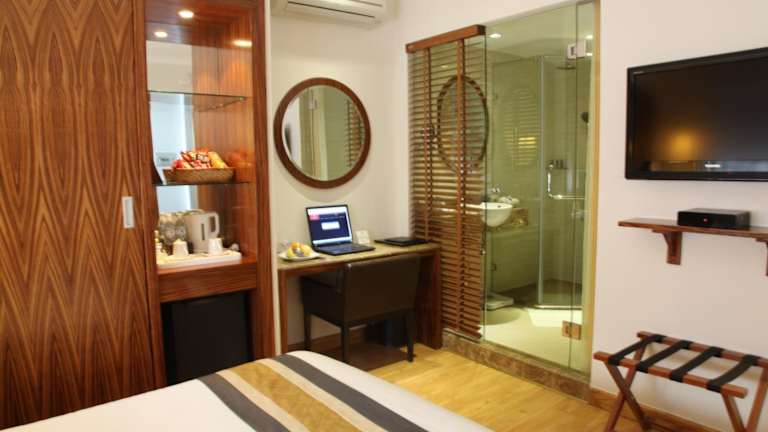 Die Zimmer im Elite Central Hotel Hanoi sind modern und gut ausgestattet. Sie verfügen über ein westliches Badezimmer und bieten kostenfreien Internetzugang. Alle Zimmer sind klimatisiert und mit einem Flachbild-TV und einem DVD-Player ausgestattet. Ein Kühlschrank und eine Minibar sind ebenfalls vorhanden, um Ihre Getränke kühl zu halten.