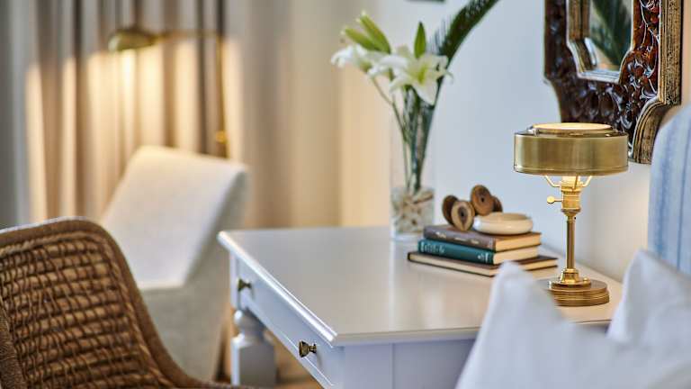 Das Hotel verfügt über 52 Nichtraucherzimmer, darunter Suiten, Einzel- und Doppelzimmer. Alle Zimmer sind im Old World-Stil eingerichtet und verfügen über hochwertige Ausstattung. Zur Standardausstattung gehören ein Balkon, ein komfortables Bett, eine Klimaanlage und individuell regulierbare Heizung. Ein Safe, ein Kühlschrank, eine Tee- und Kaffeemaschine und ein TV-Gerät sind ebenfalls vorhanden. Die Badezimmer sind mit einer Dusche oder Badewanne, einem Haartrockner und Bademänteln ausgestattet.