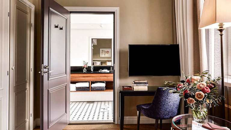Die Zimmer im Hotel Haven sind stilvoll eingerichtet und bieten modernen Komfort. Die Betten sind luxuriös und die Badezimmer sind wie ein Spa gestaltet. Zur Ausstattung gehören auch ein Chromecast Multimedia-Streaming-System, eine Minibar und Kabel- und Sat-TV.