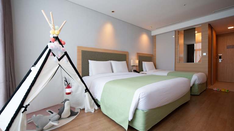 Das Hidden Bay Hotel in Yeosu liegt nur 2 km von der Nationaluniversität Chonnam Guk-dong entfernt. Die Lage des Hotels bietet eine gute Anbindung an die Umgebung und ermöglicht es den Gästen, die nahe gelegenen Sehenswürdigkeiten zu erkunden. Die Galerie Heantong und die Dolsan-Brücke sind jeweils etwa 4,3 km entfernt. Der nächstgelegene Flughafen, der Flughafen Yeosu, ist nur 16 km entfernt.