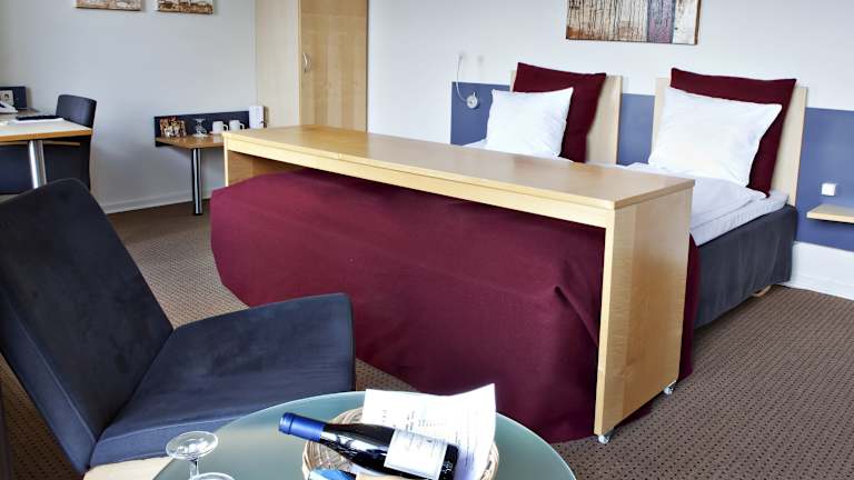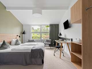 Die Zimmer im Hotel Hillerød sind individuell gestaltet und bieten modernen Komfort. Jedes Zimmer verfügt über einen Flachbild-TV, Tee- und Kaffeezubehör sowie eine Minibar. Einige Zimmer bieten Zugang zu einer Terrasse oder einer Küchenzeile. Die Gäste können sich also wie zu Hause fühlen und ihren Aufenthalt individuell gestalten.