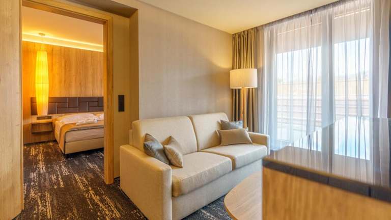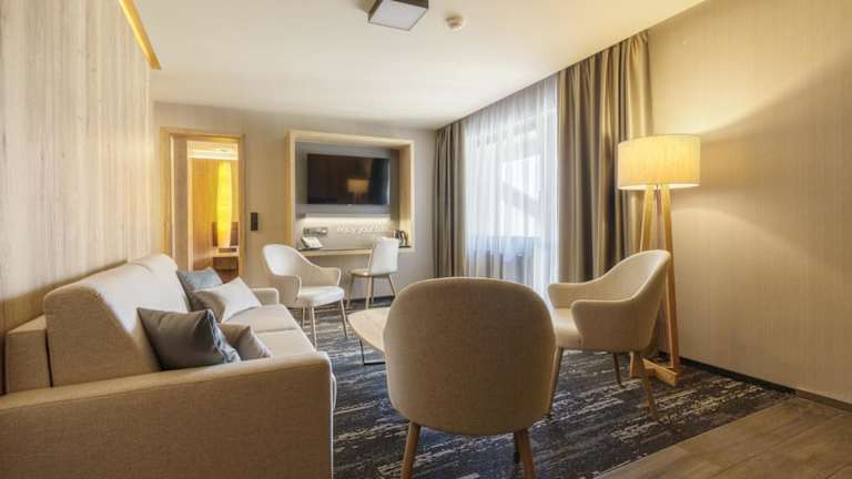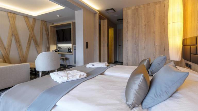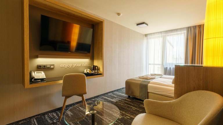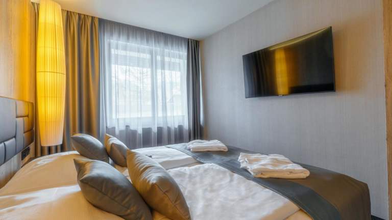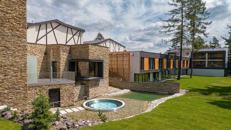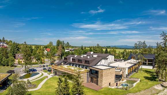 Das Hotel Hills in Stará Lesná bietet einen hohen Komfort und eine wunderschöne Lage in den Bergen der Hohen Tatra. Hier erwarten Sie stilvolle Zimmer und Suiten mit herrlichem Bergblick sowie ein exzellenter Service. Entspannen Sie im Wellnesscenter mit Entspannungsbecken, Massagedüsen, Saunen und einem Whirlpool. Ein perfekter Ort, um den Alltagsstress hinter sich zu lassen und die Natur zu genießen.