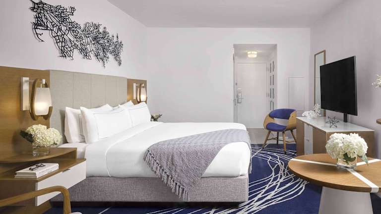 Die Zimmer im Hilton Fort Lauderdale Marina sind geräumig und elegant gestaltet. Sie bieten luxuriöse Bettwäsche, deckenhohe Fenster und einen Flachbild-TV. Jedes Zimmer ist mit modernen Annehmlichkeiten ausgestattet und bietet einen komfortablen Rückzugsort für die Gäste.