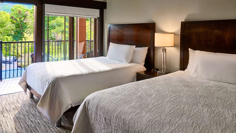 Das Hilton Garden Inn Gatlinburg bietet insgesamt 118 Zimmer und 30 Suiten auf 5 Etagen. Die Zimmer sind komfortabel ausgestattet und verfügen über Annehmlichkeiten wie Klimaanlage, individuell regelbare Heizung, Mikrowelle, Kaffeemaschine, WLAN, Fernseher und Balkon oder Terrasse. Es gibt auch rollstuhlgerechte Zimmer mit barrierefreiem Badezimmer.