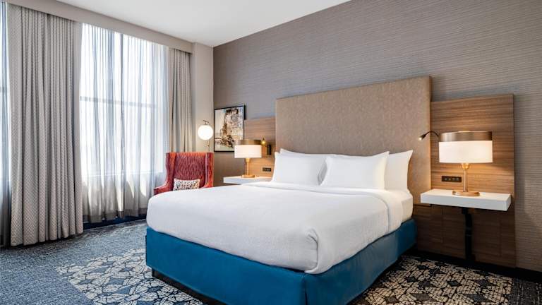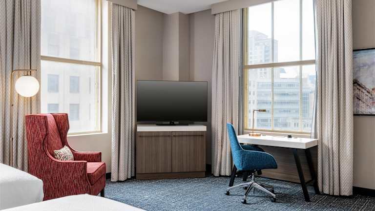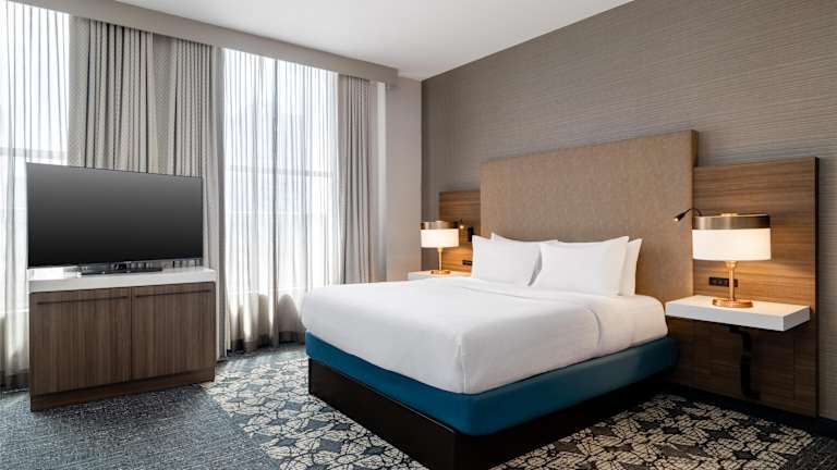 Das Hilton Garden Inn Indianapolis Downtown bietet 188 Nichtraucherzimmer auf 16 Etagen. Die Zimmer sind stilvoll eingerichtet und verfügen über Annehmlichkeiten wie eine Klimaanlage, eine individuell regelbare Heizung, einen Flachbild-HD-TV und hochwertige Bettwäsche. Zusätzliche Annehmlichkeiten wie eine Mikrowelle, ein Kühlschrank und eine Kaffeemaschine sorgen für Komfort und Bequemlichkeit während Ihres Aufenthalts.