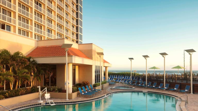 Das Hilton Melbourne Beach Oceanfront befindet sich in Melbourne, Florida, und liegt direkt am Strand. Die Umgebung bietet zahlreiche Attraktionen, darunter das Kennedy Space Centre, die Canaveral National Seashore und die Sebastian Inlet. Das Hotel ist auch ein idealer Ausgangspunkt für einen Tagesausflug nach Orlando, wo Sie die berühmten Themenparks wie Walt Disney World, Universal Studios und SeaWorld besuchen können.