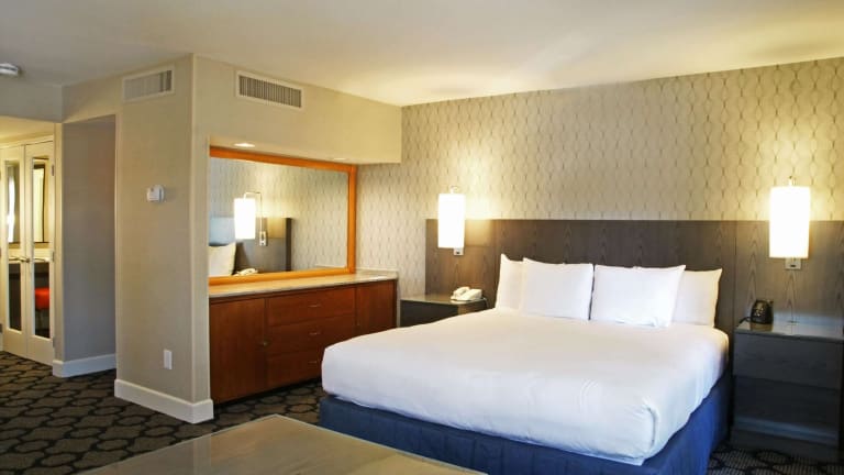 Das Hilton Palm Springs bietet seinen Gästen eine ideale Lage nahe dem Palm Springs Convention Center und vielen beliebten Attraktionen. Das Hotel überzeugt mit außergewöhnlichen Annehmlichkeiten wie einem Tages-Spa und erstklassigen Gourmetrestaurants. Genießen Sie die Nähe zu den San Jacinto Mountains und erkunden Sie die Luxus-Boutiquen, Kunstgalerien und charmanten Cafés in der Umgebung. Der Palm Springs International Airport ist bequem mit dem hoteleigenen Shuttleservice erreichbar. Das Hotel ist auch ein perfekter Ausgangspunkt für Golf- und Wanderbegeisterte. Beginnen Sie Ihren Tag im hoteleigenen Restaurant oder im modernen Fitnesscenter und nutzen Sie die geräumigen Tagungs- und Veranstaltungseinrichtungen.