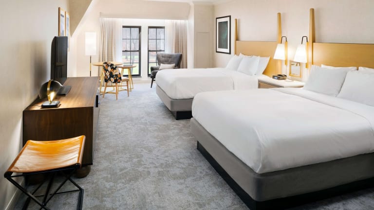 Erleben Sie den Charme eines Schlosses im Hilton Pearl River Hotel, das auf einem weitläufigen Grundstück im malerischen Hudson River Valley liegt. Genießen Sie den Blick auf die umliegenden Wälder und den Blue Hill Golfplatz, während Sie sich in den geräumigen Zimmern mit kostenfreiem WLAN und raumhohen Fenstern entspannen. Das hoteleigene Restaurant bietet moderne amerikanische Gerichte mit saisonalen Zutaten und die Clearwater Tavern lädt zu Speisen und Getränken ein. Bleiben Sie aktiv im Fitnesscenter oder entspannen Sie im Garten oder im Innenpool. Die Nähe zu den Städten Nyack und Piermont sowie zum Palisades Center bietet zusätzliche Freizeitmöglichkeiten in der Umgebung.