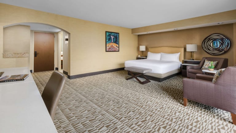 Das Hilton Phoenix Airport Hotel bietet modernen Komfort und eine günstige Lage in der Nähe des internationalen Flughafens Phoenix Sky Harbor. Mit seinen geräumigen Zimmern, einem hauseigenen Restaurant und Annehmlichkeiten wie einem Fitnesscenter und einem Außenpool ist es eine ideale Wahl für Geschäftsreisende und Urlauber.