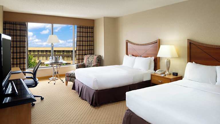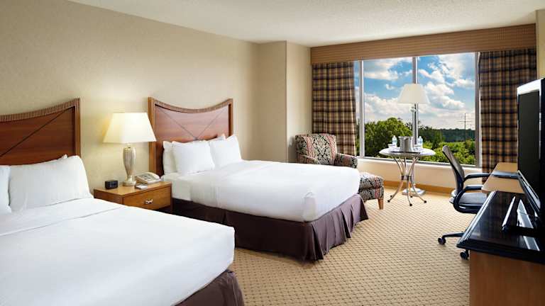 Das Hilton Washington Dulles Airport Hotel bietet 449 Nichtraucherzimmer auf 5 Etagen. Die Zimmer sind komfortabel eingerichtet und verfügen über Annehmlichkeiten wie einen Flachbild-Kabel-TV mit Pay-per-View-Kanälen. Jedes Zimmer verfügt über ein eigenes Badezimmer mit Haartrockner.