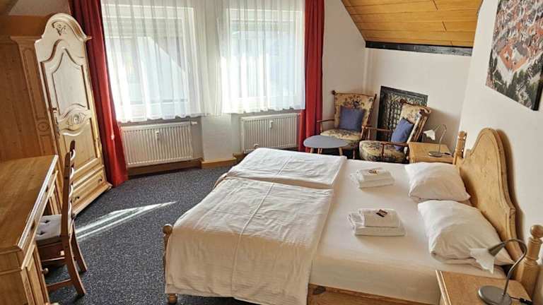 Die Zimmer im Hotel Hirsch sind gemütlich eingerichtet und verfügen über Sat-TV und ein eigenes Bad. Alle Zimmer sind Nichtraucherzimmer, sodass für einen angenehmen Aufenthalt gesorgt ist.