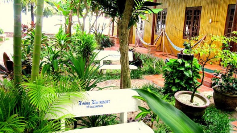 Das Hoang Kim Golden Resort bietet klimatisierte Unterkünfte mit Blick auf den Garten oder das Meer. Zu den Einrichtungen des Resorts gehören ein Außenpool sowie ein Restaurant und eine Bar.
