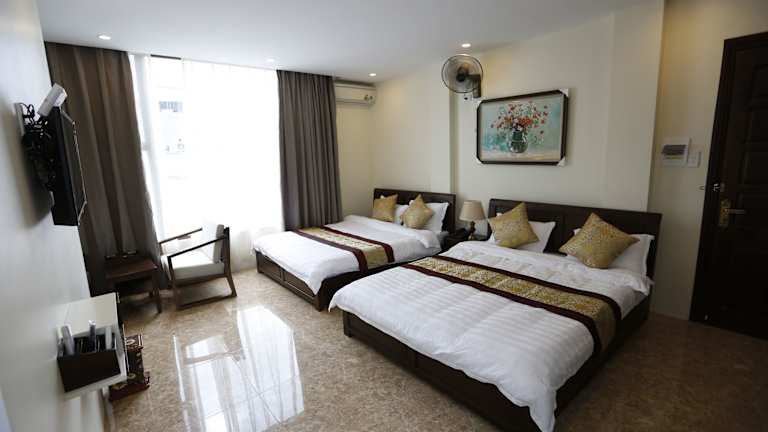 Die Zimmer im Hoang Ngoc Hotel sind komfortabel und bieten eine gemütliche Atmosphäre. Einige Zimmer verfügen über eine Terrasse oder einen Balkon, von dem aus Sie eine herrliche Aussicht genießen können. Alle Zimmer verfügen über ein eigenes Badezimmer mit Hausschuhen, kostenfreien Pflegeprodukten und einem Haartrockner. Ein Flachbild-TV sorgt für Unterhaltung.